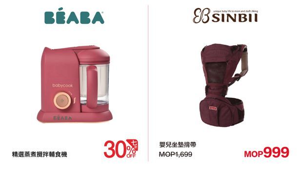 除了各位爸爸、妈妈挑选到自己的心水好物,小女孩和小男孩亦要焕新开心过年!一众母婴产品、玩具及文具精品等亦有超值优惠,「培乐多」披萨外送车「SINBII」婴儿坐垫背带直降澳门币700元绝对是入手好时机!