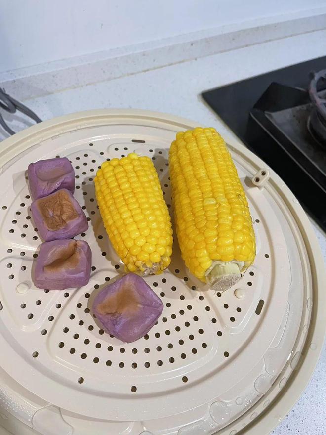 而用这个蒸锅,接水之后,打开蒸锅,3秒钟瞬间蒸汽喷出,一个玉米10分钟多一点点,就给蒸好了!!!