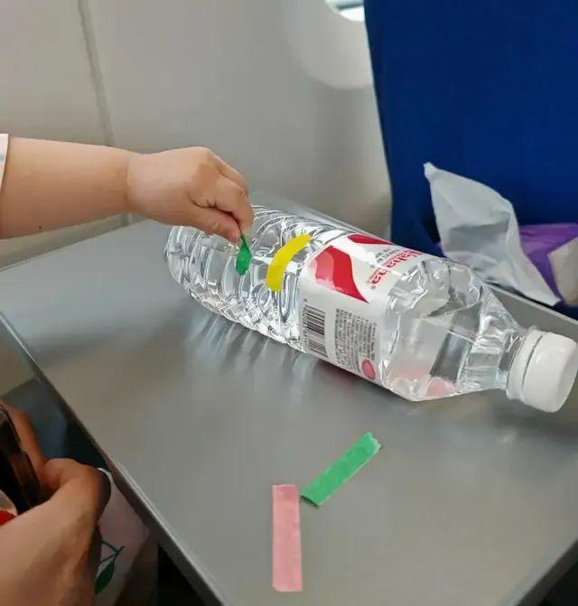 暑假出游玩,带上美纹纸,孩子在矿泉水瓶上撕下来贴,贴上去再撕,贴各种地方不会留下痕迹,关键是轻便好带,孩子一声不响玩了二十多分钟。