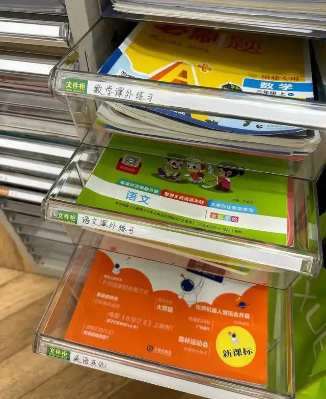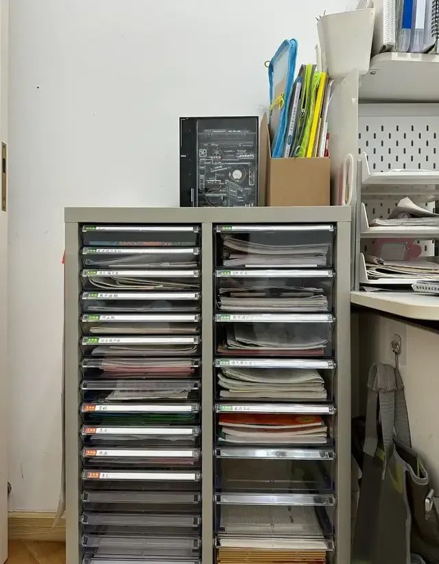 上小学后,学习资料逐步增加,全靠这个铁皮抽屉柜,颜值高又耐用,简直是收纳界的天花板!
